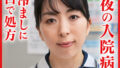 深夜の入院病棟、腹痛を訴える男性患者に優しく寄り添い、消灯前のおまじない。さりげなくお腹をさする指先が下半身へと伸びてゆき…。若い男に欲情した美熟女が職務を忘れて男根を堪能。更に男が眠りに就いてからも火照った体は我慢できず再訪問。真白で張りのある豊満な裸体を曝け出し男に跨り溜まった性欲を満たす。あらゆる体位で男根を堪能し、だらしない体を震わせ、最後は中出しにご満悦